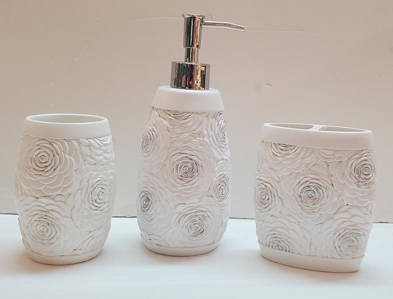סט לאמבטיה- פרחים לבן