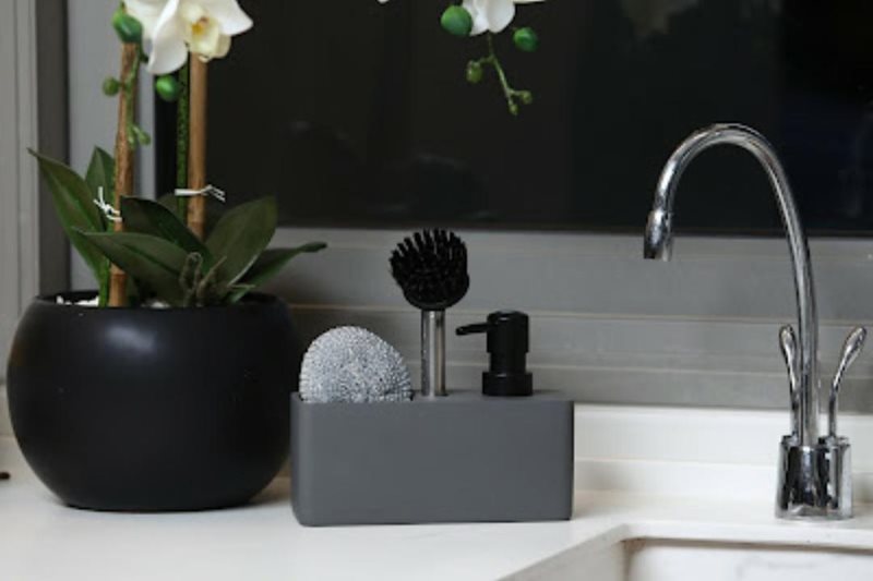 כלי מעוצב לסבון ומברשת ניקוי למטבח